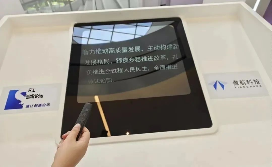 通过无介质全息空中成像技术,提词器界面内容可直接悬浮于空中。演讲者滑动空中界面或使用智能翻页笔,便可进行内容调整,无需低头看稿,实现了全程“脱稿演讲”,让演讲者与观众之间的眼神交流更自然。