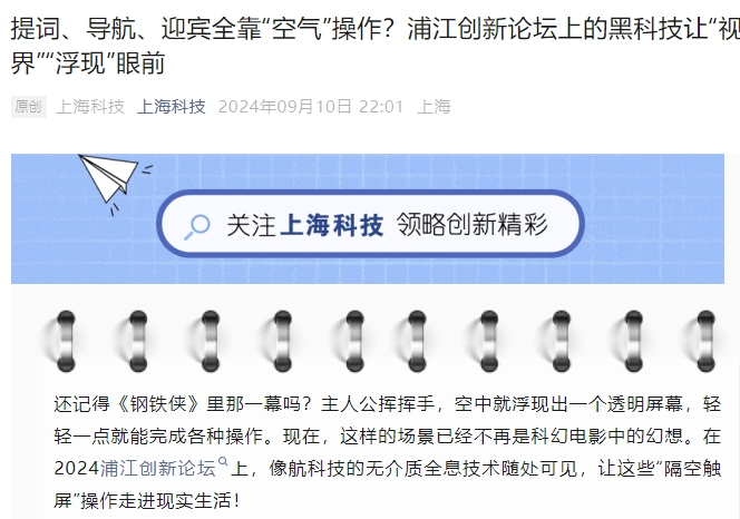 论坛现场,无介质全息创新产品的广泛应用,受到上海市科学技术委员会官方公众号《上海科技》的专题报道,引发社会各界好评。