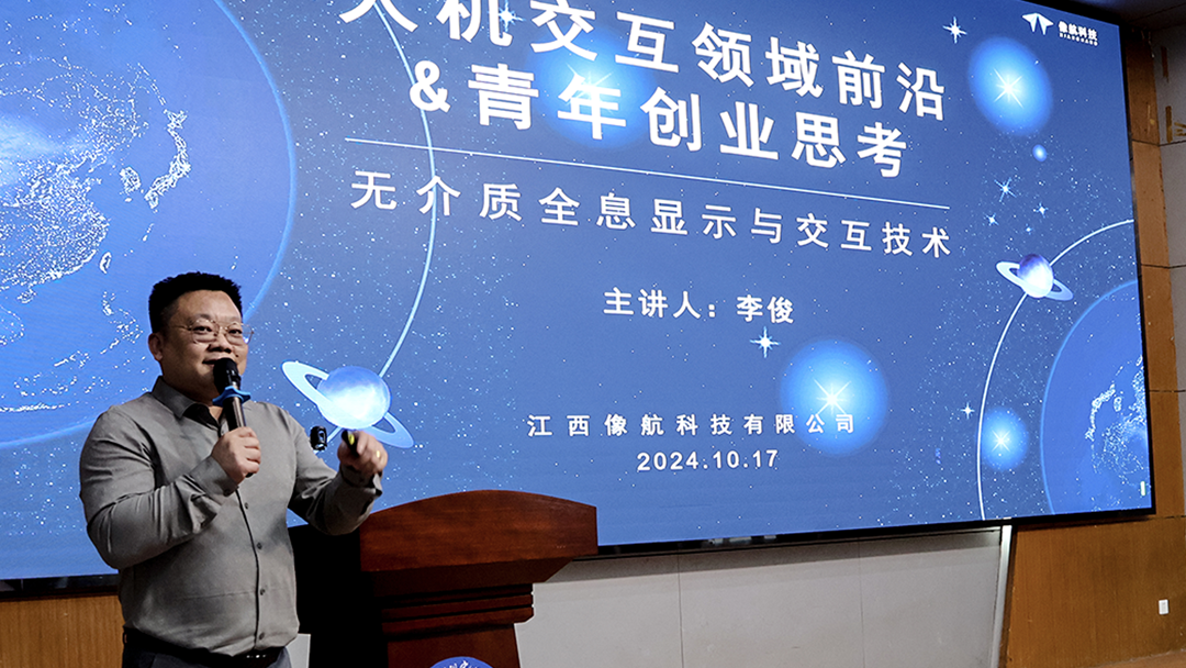 活动期间,李俊发表以《人机交互领域前沿&青年创业思考》为主题的报告演讲。从元宇宙、Web3.0等技术出发,分享了像航无介质全息在元宇宙领域的创新实践,以及前沿技术对创业发展的推动作用。