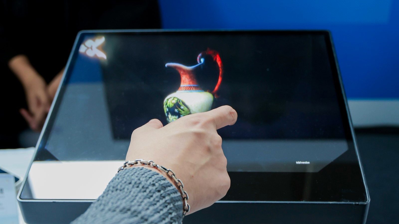 活动现场,搭载无介质全息技术的导览机器人、提词器、消费级产品等智能终端成为焦点,无需物理屏幕与穿戴设备,数字内容以全息影态悬浮空中,观众可直接通过手势隔空操作,直观演绎“所见即所触,空间即界面”的数字场景,被行业专家评价为“技术革新,应用无限”。