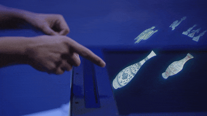 ·文物活化(历史馆):古代青铜器不再冰冷地躺在玻璃柜或屏幕里,而是以一个完整的、正在旋转的三维光影形态悬浮于展品上方。观众无需触碰,即可通过手势交互,放大观看器物的每一个纹理细节,实现“虚实无界融合”的震撼体验。