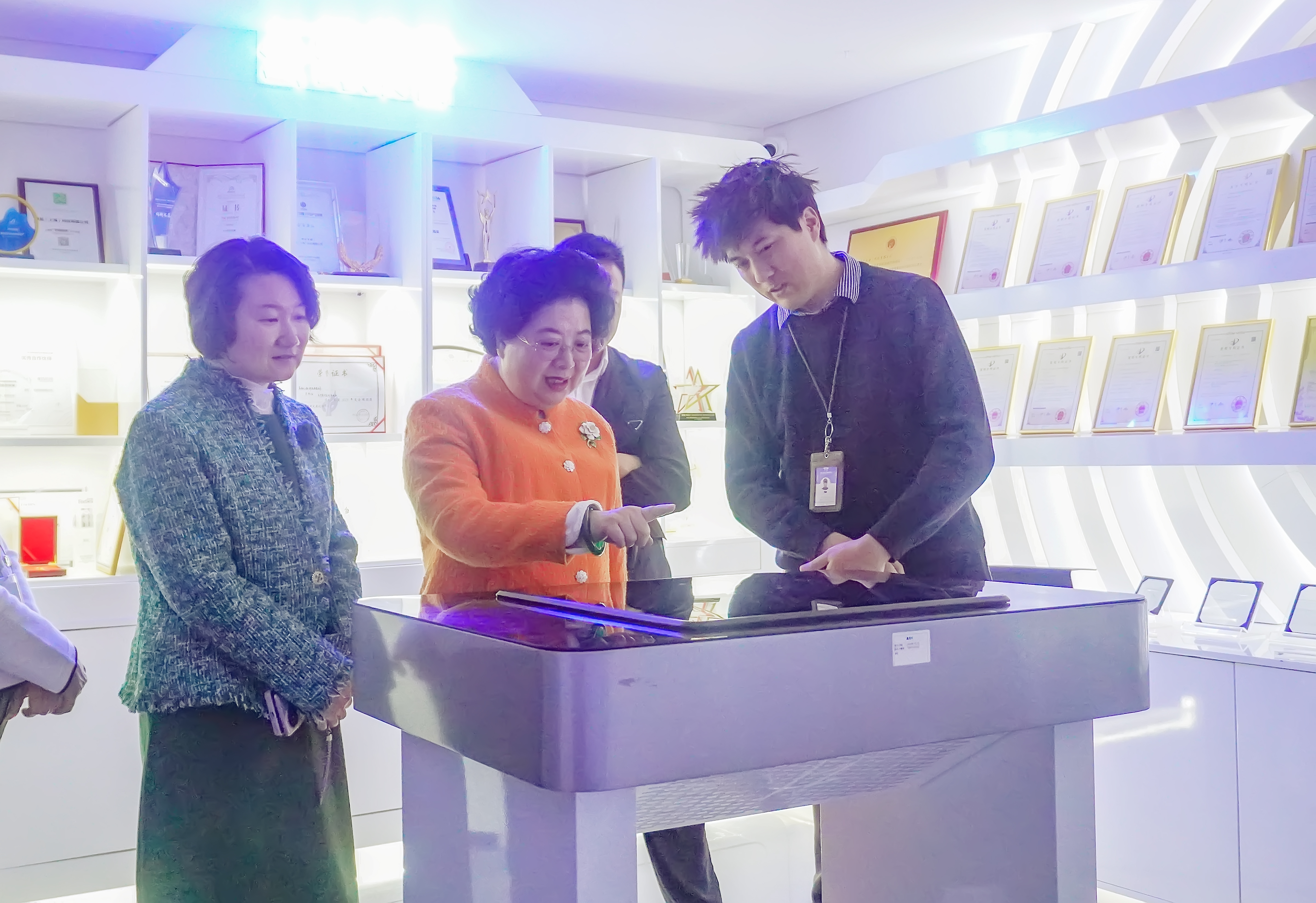 曹燕灵主席现场深入体验了智能座舱、智慧医疗、智慧教育、消费电子、文旅双展等领域的无介质全息落地应用产品,并对像航的技术研发纵深、跨区域场景落地及系统性国际化策略给予了高度肯定。