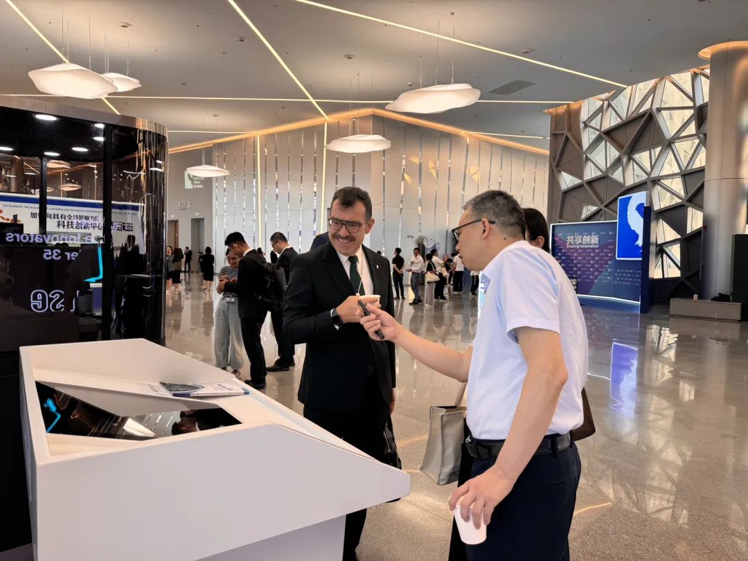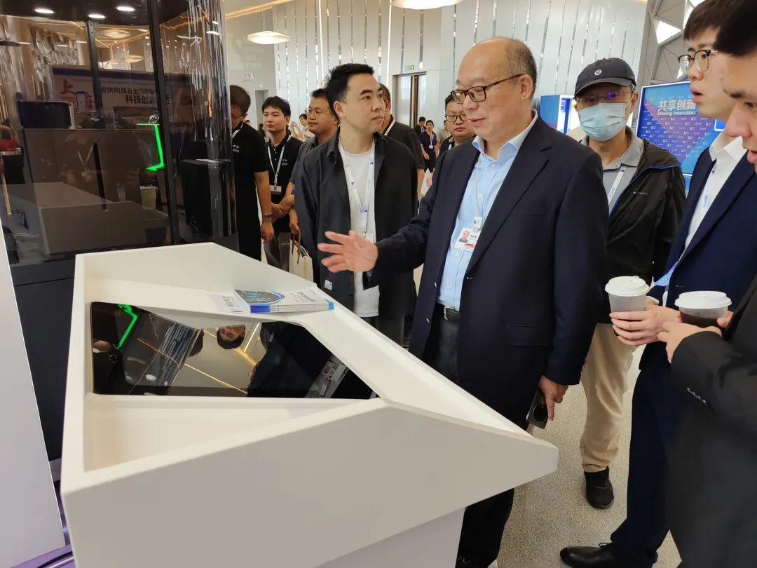 滑动空中界面或使用智能翻页笔,演讲者可轻松实现内容调整。配合升降系统,提词器还可根据演讲人身高调整高度。巡馆期间,世界工业技术研究组织协会主席哈森·曼达尔、上海市科学技术委员会二级巡视员陈宏凯参观并体验了无介质全息提词器,对像航科技核心技术创新力给予高度肯定。