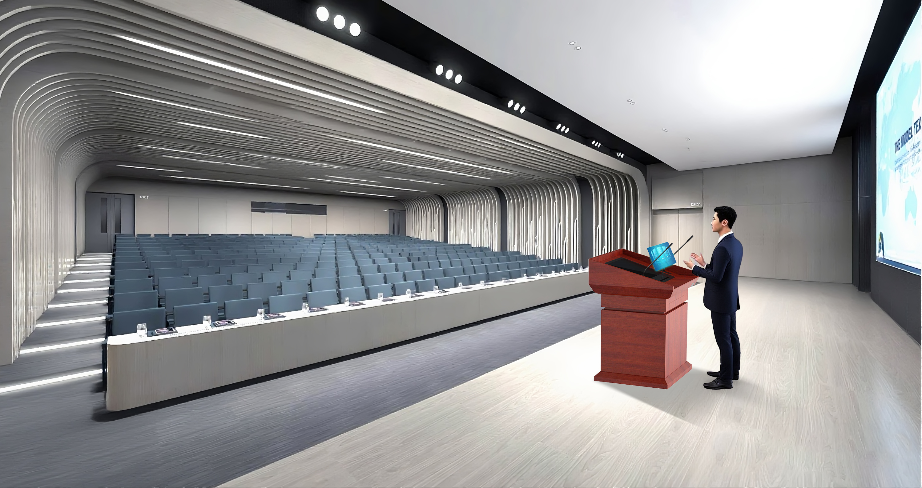 不同身高的演讲者往往需要调整讲台高度,这个过程不仅影响演讲流畅度,更关乎专业形象的建立。像航全息讲台的智能升降系统能够依据演讲者身高,快速调节至最佳位置。这种细致入微的设计,让每位演讲者都能以最得体的姿态呈现内容,展现出最佳的专业状态。