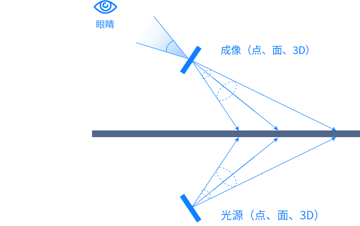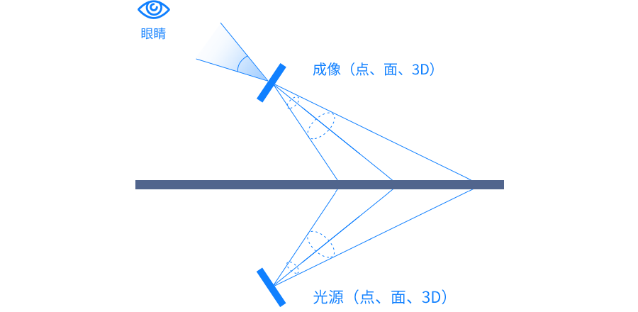 光学微镜结构通过复制光场,在空中重现 100% 无像差的三维立体实像。该结构记录“物空间”实物光源射向成像单元的每条光线的强度、角度、波长等信息,并在阵列另一侧“像空间”复制出完全镜像的光线,复制光线经再聚焦,在“像空间”对称位置形成与“物空间”物体完全镜像的实像,此实像无需介质,可直接裸眼观察。